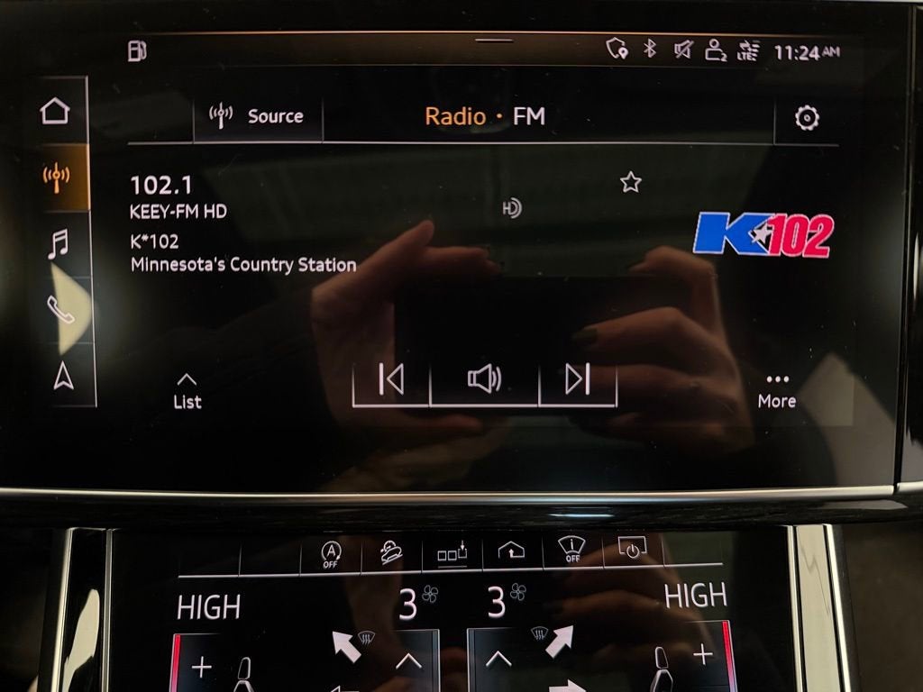 Advanced driver assist and safety features include a head-up display, front and rear park assist, lane departure warning, automatic high beam LED headlamps, fog lamps, keyless entry with push button start, and a rear vision camera, offering added confidence whether navigating city streets or Minnesota highways. Performance and handling are further enhanced by the adaptive air suspension and limited slip differential, delivering a composed ride and precise control in varying road conditions. The exterior is complemented by striking 22-inch black aluminum wheels, giving this Q7 a bold and upscale presence.