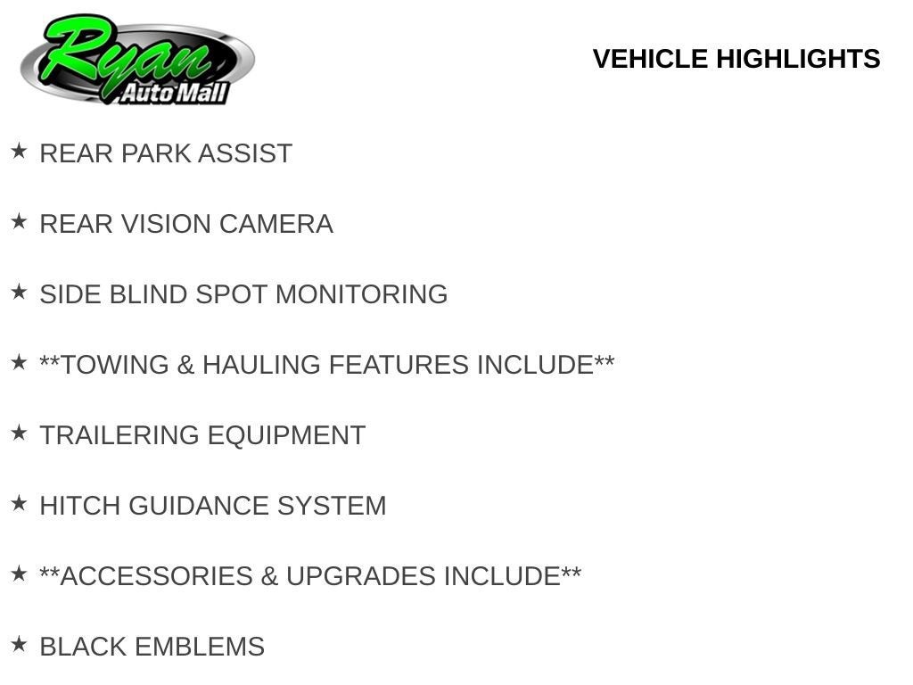 - Uses the Rear Vision Camera display to provide you with a guideline to help align your vehicle with a trailer1