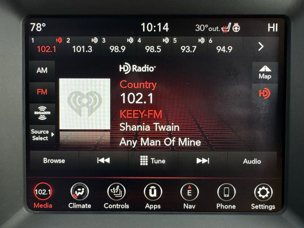Inside, the Durango R/T features a driver-focused cabin with high-quality materials and modern technology. The Uconnect infotainment system is displayed on an intuitive 8.4-inch touchscreen with factory navigation, Apple CarPlay and Android Auto connectivity, and 4G LTE Wi-Fi capability. Leather upholstery, heated front seats, heated second-row seats, a heated steering wheel, memory settings, and power-adjustable driver and passenger seats provide comfort for every occupant. Multiple zone automatic climate control, a power tilt and telescoping steering column, a 120-volt power outlet, universal garage door controller, remote start, power liftgate, and rear window defroster add everyday convenience.