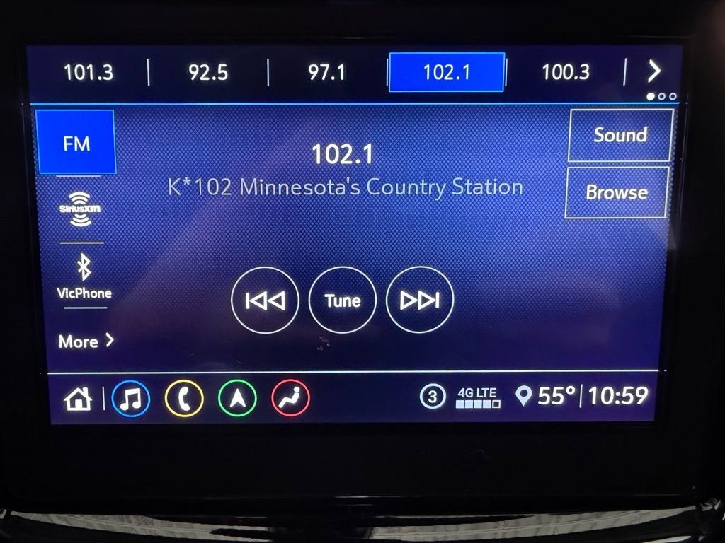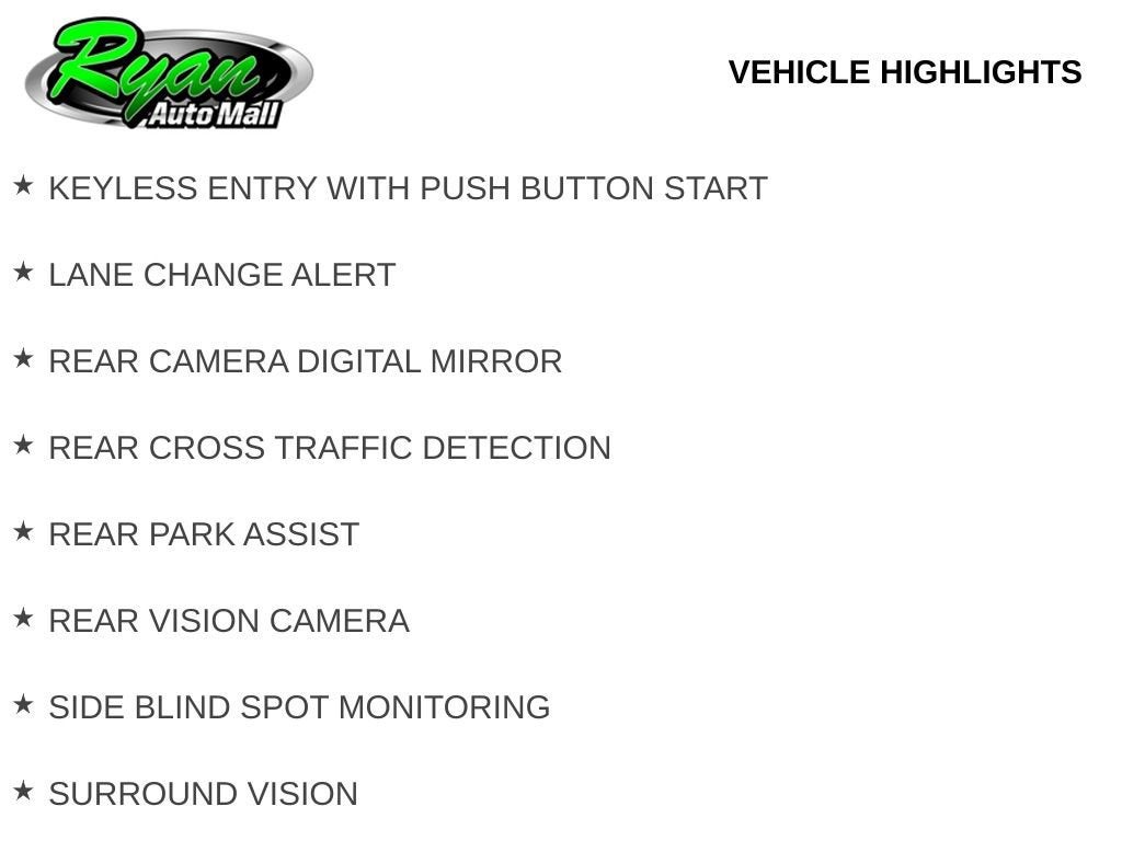 Technology is highlighted by an 8-inch touchscreen display with navigation, Apple CarPlay and Android Auto connectivity, 4G LTE Wi-Fi capability, and a premium Bose sound system. Safety and driver assistance features include blind spot monitoring, lane change alert, rear cross traffic detection, surround vision, rear park assist, a rear vision camera, and a digital rearview mirror, helping provide confidence behind the wheel.