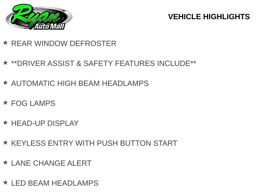 Safety and driver-assist features provide added peace of mind, including automatic high beam headlamps, LED beam headlamps, fog lamps, lane change alert, rear cross traffic detection, side blind spot monitoring, surround vision, a rear vision camera, and keyless entry with push-button start. This vehicle has undergone our reconditioning process, including a multi-point vehicle inspection with oil change and a complete exterior and interior detail, ensuring it meets the high standards expected at Ryan Chevrolet in Buffalo, MN.