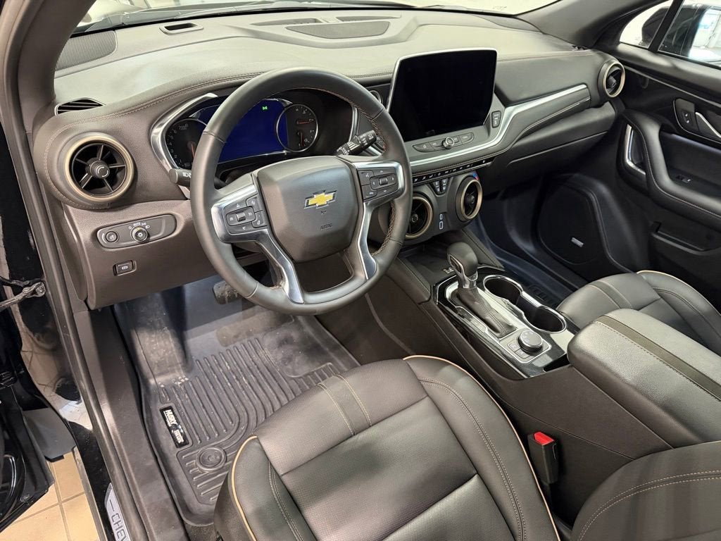 This Blazer is also equipped for added versatility with trailering equipment and hitch guidance, making it ready for light towing needs. The exterior is complemented by deep tinted glass and 20-inch medium android machined-face aluminum wheels, giving it a bold and upscale appearance.